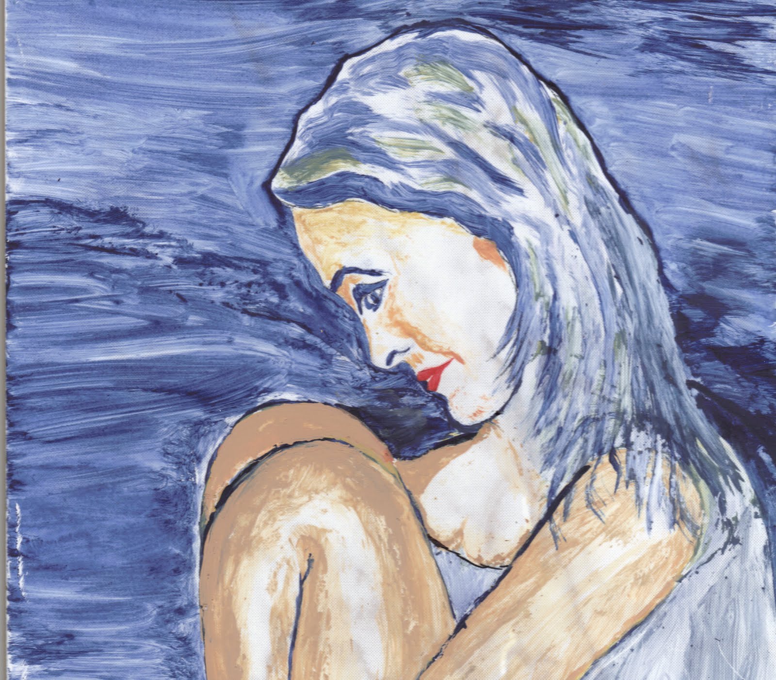 Lunes 28 de marzo: envío a José Luis González la letra de «Una y otra vez» y una imagen simbolizando a una mujer postrada y abrazando sus piernas para un folleto que está editando con todos los poemas del recital(crédito, Francisco Montero Álvarez, mi padre, que la dibujó para el single de Viciosfera que formaron las canciones «Nostalgia» y «She was a song»).