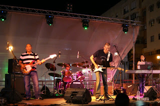 Me resultó gracioso un grupo que estaba sentado en una de las terrazas, cargados ya con unas cuantas cervezas, que no dejó de aplaudir con entusiasmo cada uno de los temas. Corríamos el riesgo de ser abucheados si no terminábamos de convencerlos. Para todos ellos nuestras canciones también.