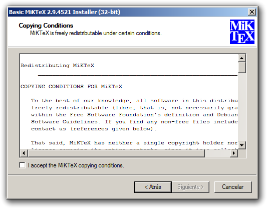 Acepta las condiciones de redistribución y se habilitará el botón mágico de Windows: Siguiente.