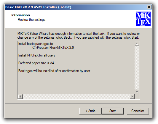 La opción recomendada, que es la que instalaremos aquí, contiene la distribución básica, en la que se incluyen, además del editor y los compiladores, los paquetes más comunmente empleados. En el caso de que necesitemos otros que no figuren en la instalación inicial, la aplicación los descargará desde su repositorio en internet sin necesidad de nuestra intervención. Por otro lado, incorpora mecanismos que nos permiten mantener siempre la última versión de cada paquete, ocupándose de que nuestro sistema se encuentre siempre perfectamente actualizado.